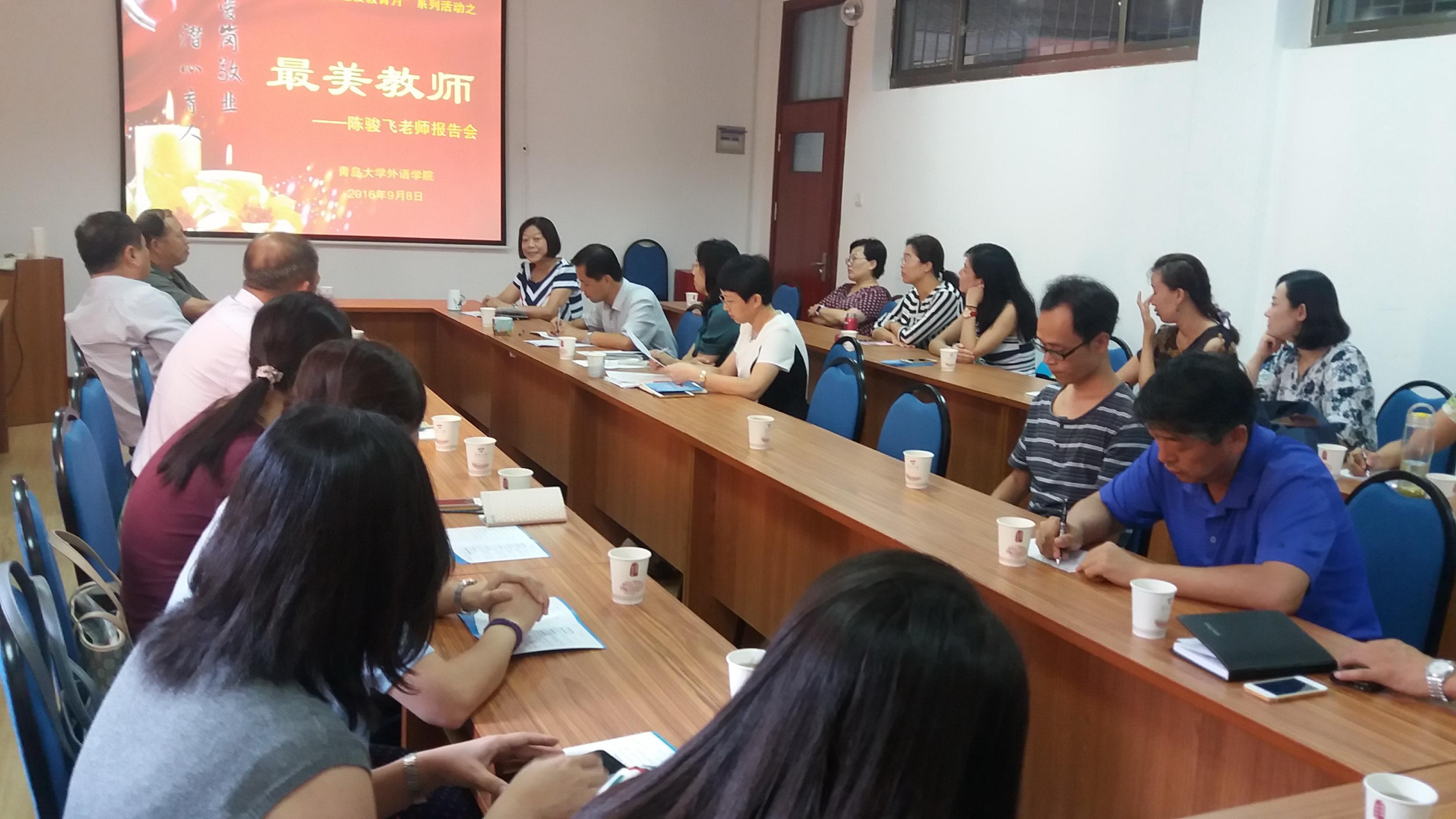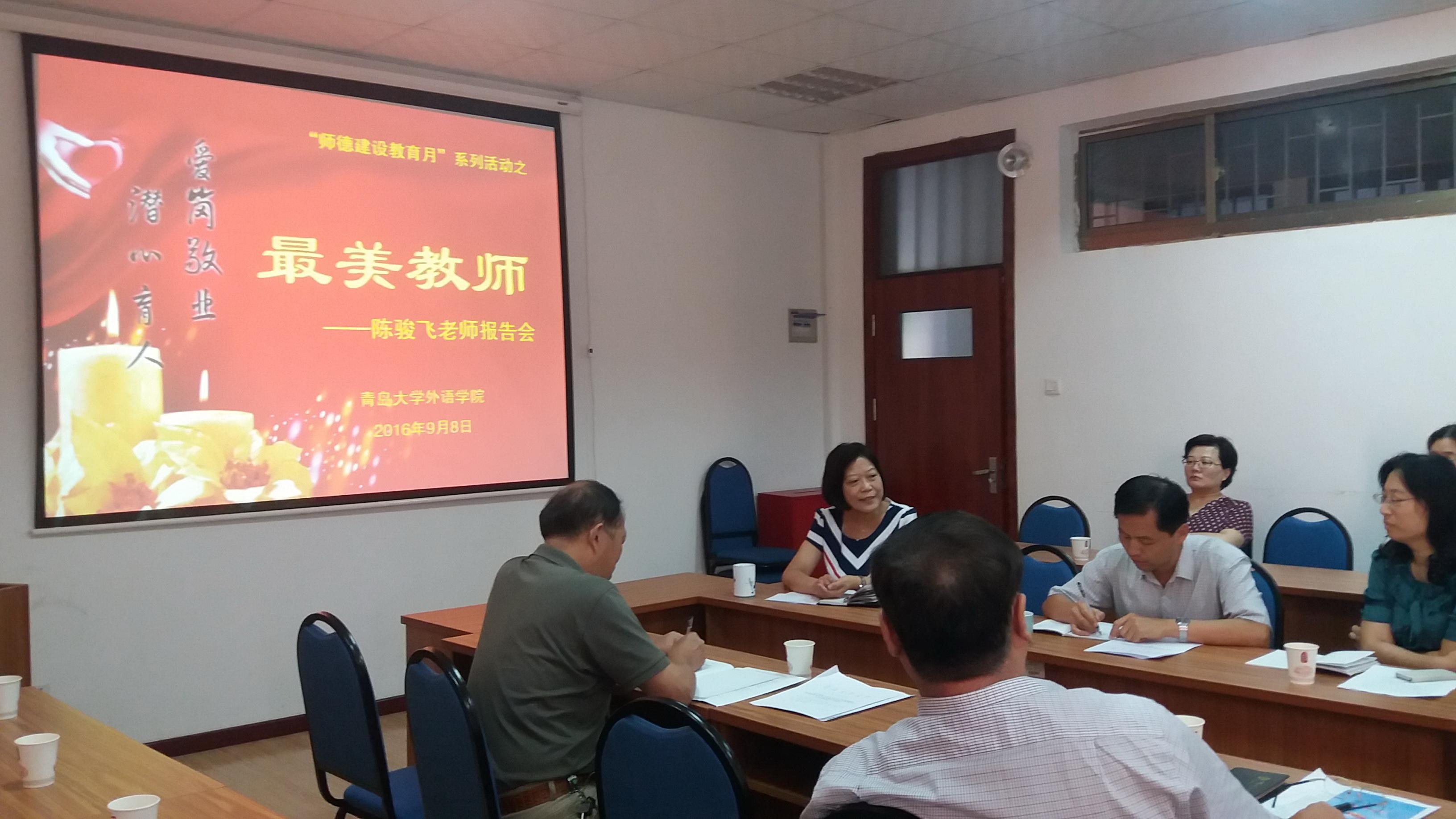 报告会上,陈骏飞还祝福每一位老师都能在青岛大学拥有夏花般灿烂的人生。与会教师也表达了对她由衷的钦佩和感谢,表示会以陈老师为榜样,踏踏实实教书育人,堂堂正正为人师表。