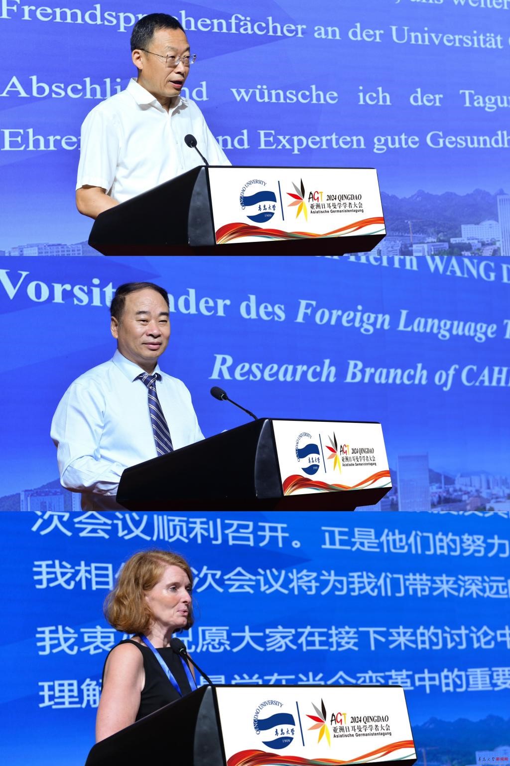 刘恩贤在致辞中对出席本次大会的领导、各国专家学者和师生致以热烈的欢迎。他表示,青岛大学能够作为联合主办方举办此次会议,不仅是亚洲日耳曼学界对青岛大学的信任,也是对我校德语语言文学专业和外语学科发展的高度认可。本次大会必将有力提升亚洲对德语地区语言、文学和文化的研究,促进亚洲各国在该领域的对话、交流与合作。