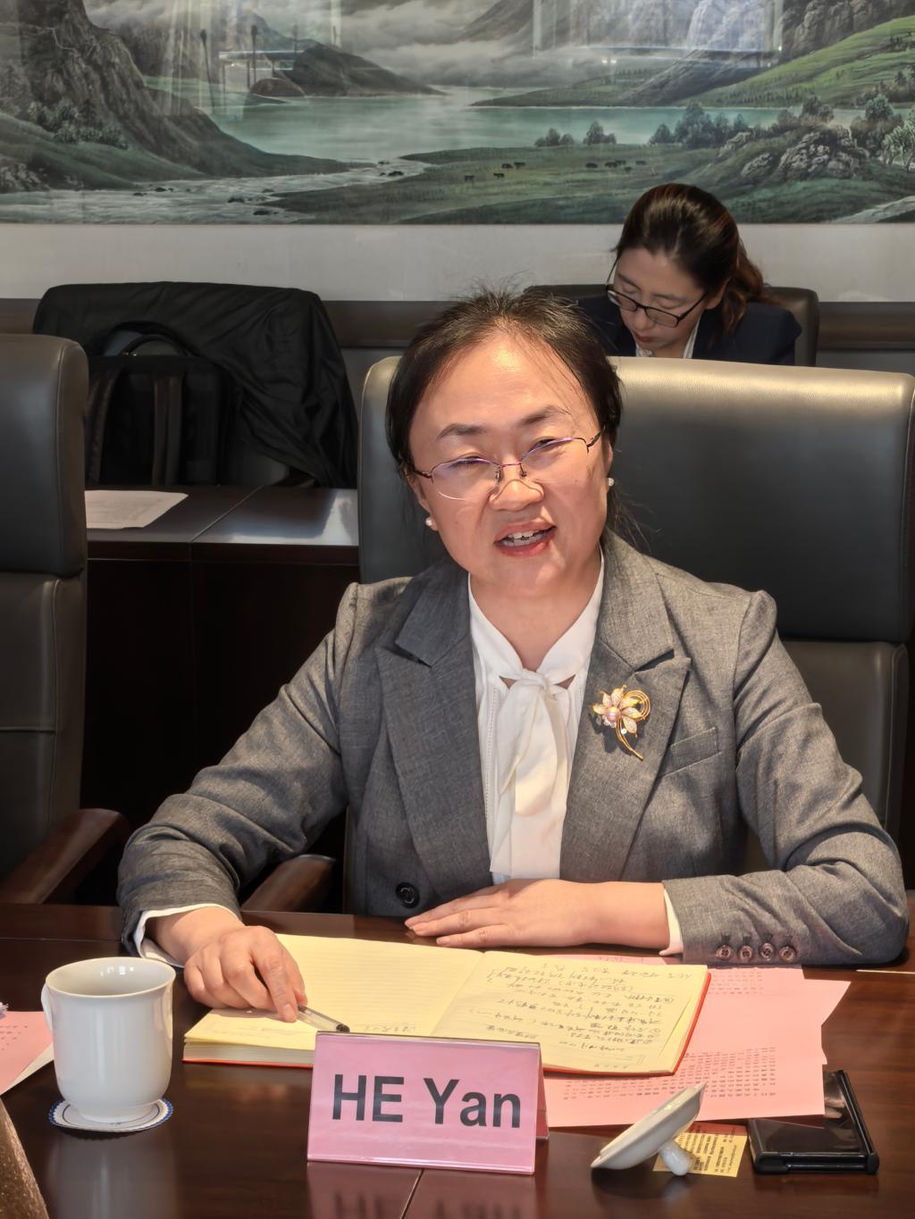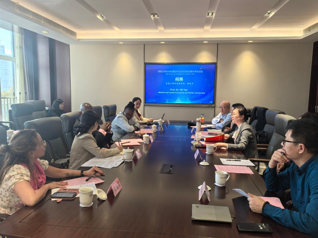 首先,青岛大学何燕副校长在致辞中首先对哈瓦那大学代表团的到访表示热烈欢迎,并回顾了青岛大学与古巴哈瓦那大学长期以来的友好合作关系。她指出,两校在学术、科研和文化交流方面的合作成果丰硕,为两国教育合作树立了典范。