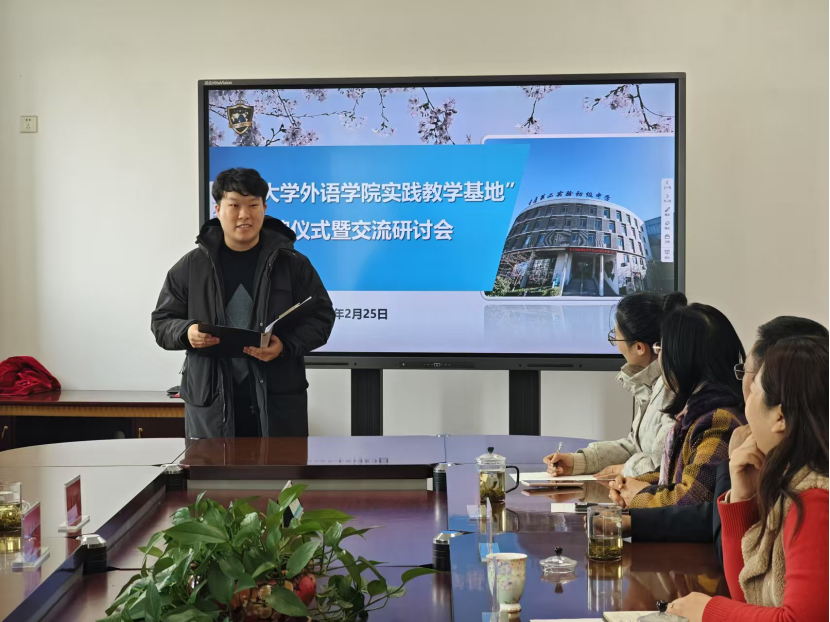 师生的到来表示欢迎,并寄语实习生:“教育是生命的唤醒与启迪,希望同学们以育人初心投身实践,虚心学习教学经验,在知识传授、班级管理、学生成长三个维度全面提升能力,为未来职业发展奠基。”
