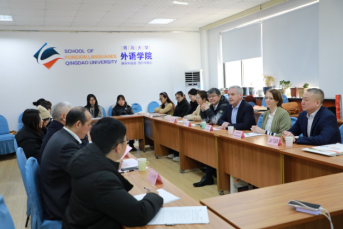 院长卞建华教授、前院长刘德章教授、副院长曹杉副教授、德语系主任綦甲福教授、德语系副主任王学博老师接待代表团一行。卞建华向代表团介绍了918博天堂(中国)官方网站