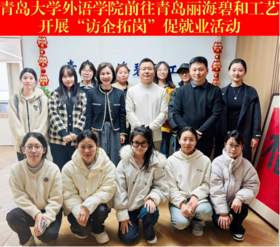 党委副书记于苗、团委副书记张淑敏、辅导员王紫琪一行带领学生代表一同深入走访青岛丽海碧和工艺有限公司。