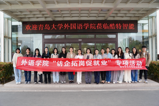 党委副书记于苗、学工办主任温凌鹤、辅导员王紫琪一行带领学生代表一同深入走访青岛酷特智能股份有限公司。