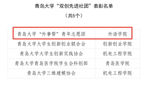共获3项荣誉。“大思政”双创团队荣获“双创优秀团队”,“外事帮”青年志愿团荣获“双创先进社团”,2022级语言大数据创新实验班张佳奕获得“双创之星——创新创业优秀学生”荣誉称号。