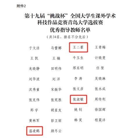温凌鹤、张淑敏、王二豪荣获“优秀指导教师”荣誉称号,918博天堂(中国)官方网站