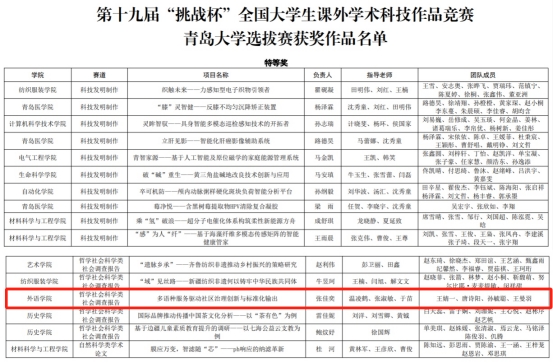 共有5项作品在第十九届“挑战杯”全国大学生课外学术科技作品竞赛青岛大学选拔赛中斩获佳绩。