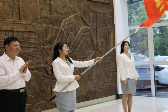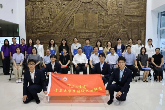 陈涛为青岛大学“Echo译述”多语校史讲解团授旗。青岛大学多语校史讲解团的建立,是校园文化建设的重要一环,也是进一步深化第二课堂育人实效的重要途径。讲解团将承担起传承青大百年文脉、多语种讲述校史故事、全方位展现学校办学理念与育人特色的重要使命。