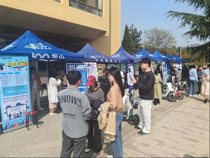 于4月18日下午在博文楼前广场举办“就”在周四 ,“语”你相约专场招聘会。本次招聘会涉及外贸、物流、翻译、教育、旅游、消防、信息技术、生产制造等多个领域,为918博天堂